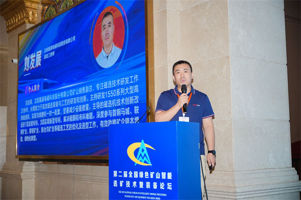 論壇技術交流環節,沈陽隆基高級工程師劉發展帶來了題為《智能磁選賦能綠色礦山——高效節能磁選裝備的技術創新與實踐》的精彩主題演講。他深入闡述了當前綠色礦山建設對選礦技術提出的高效、節能、智能化新要求,重點分享了沈陽隆基在筒式磁選機技術領域取得的核心創新成果。結合豐富的實際應用案例,生動展示了沈陽隆基筒式磁選機如何為礦山客戶創造經濟效益與環境效益,積極推動選礦環節的綠色化、智能化發展。內容充實、觀點前沿,引發了在場專家和業界同仁的廣泛關注與熱烈討論。