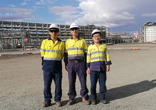 王超、巴清偉隆基優(yōu)秀的技術(shù)工程師,李印章隆基資深的服務(wù)工程師,由他們?nèi)私M成的工程師團(tuán)隊年還沒有過完,就踏上了澳大利亞的土地。19年末,隆基的第一批工程師團(tuán)隊就來到這里,進(jìn)行設(shè)備的安裝調(diào)試,終于在年前,第一階段工作順利收尾,大家?guī)е荒甑氖斋@跨越千山萬水,回到國內(nèi)與家人相聚。