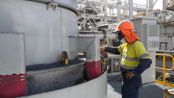 年后,中國大多數(shù)地方還是寒風(fēng)瑟瑟,甚至冰雪千里,地球另一端的澳大利亞確是陽光燦爛的炎炎盛夏,項目所在地的溫度更是高達(dá)40度,加上設(shè)備調(diào)試點距地面有十層樓的高度,穿著長袖工裝,帶著面罩的隆基工程師必須頂著高溫每隔2小時爬樓調(diào)試一次,工作難度可想而知。
